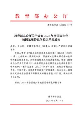大事件八:6月 我校荣获全国青少年校园足球特色学校称号。