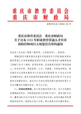 大事件十二:6月 我校被列入2024年重庆市职业教育贯通人才培养揭榜挂帅项目立项建设名单。