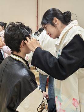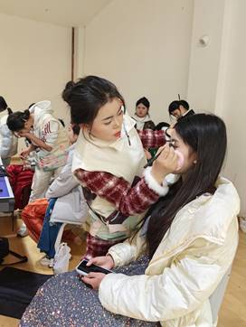 现代风尚美妆社成立于2024年10月,是学校现代商务系美容专业为同学们提供的学习、交流和实践平台,主要团员来自现代商务系美容美体艺术专业。他们通过努力学习专业知识、磨练技术、不断提升职业技能,从而形成“人无我有,人有我精,人精我专”的竞争优势,在自己擅长的领域中脱颖而出。岁末年初,我校四个系部相继举办了元旦迎新晚会。30多名师生组成的现代风尚美妆社,荣幸地担任了本次晚会的形象设计师,为超过两百名师生精心打造了华丽的舞台妆容,为演出的成功贡献了力量,凭借其精湛的技艺和独到的审美,赢得了师生们的一致好评。