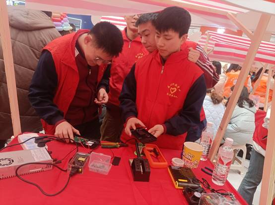 为践行职业教育服务社会的理念,提升学生实践能力,同时解决社区居民小家电维修难题,3月15日,智能制造系电子技术专业师生在爱情广场开展公益维修活动。活动为学生提供了真实场景下的技能实践机会,强化理论联系实际的能力;弘扬志愿服务精神,培养社会责任意识;倡导绿色生活理念,减少资源浪费。