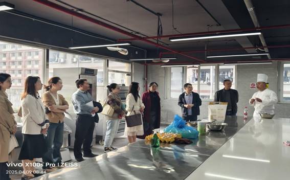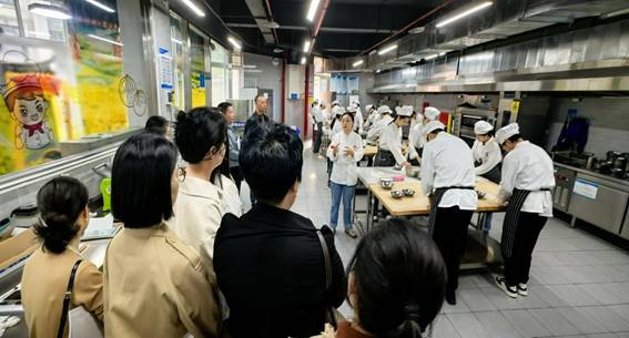 交流中,学院还分享了专业建设的创新实践,如组织党员教师深入企业调研,动态优化课程设置;强化“课程思政”建设,将职业素养教育贯穿教学全过程;依托“党建+竞赛”模式,激发学生创新能力和专业技能提升。此外,双方实地参观了烹饪实训室、茶艺实训室及党建文化长廊,就实训基地建设、党建文化氛围营造等议题展开深入探讨。
