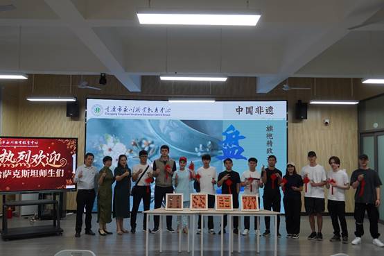 品味茶香后,哈萨克斯坦师生来到工程艺术系,专业教师温正鲲以“盘扣为媒”,带领哈方师生开启东方造物美学之旅。通过“盘龙扣”与“福字结”的分解教学,从缎带裁剪、铜丝塑形到“一缠二绕三抽芯”的指尖技法,生动演绎“以扣传情、结绳记事”的传统智慧。盘扣制作作为一项传统手工艺,凝结着中华民族卓越的智慧和创造力,通过亲手制作,哈方师生初步了解了其制作方法。活动尾声,系部师生特别赠送了寓意“连结四海”的中国结,进一步增进了中哈师生之间的友谊。