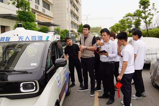 访学之旅最后一程,由实训管理中心王鸿君老师带领,参观了智能制造系工业机器人实训室和中德产业学院,体验了无人驾驶技术,感受到了现代科技的前沿发展。这不仅是一次科技体验之旅,更是中哈两国在职业教育领域合作的一次积极探索,为培养具有国际视野和创新能力的高素质人才提供了有力支撑。