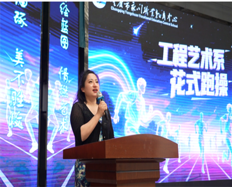 学校积极响应国家《"健康中国2030"规划纲要》号召,围绕"确保学生校内每天体育活动时间不少于一小时"目标要求,着力丰富校园体育文化、增强学生身体素质。近日,工程艺术系在学校体育馆成功举办花式跑操比赛,活动精彩纷呈。校党委书记、校长孔令勇,党委副书记喻德贵,副校长邹有奇,党委成员、副校长卢永兰,以及学生发展中心、工程艺术系相关负责人共同出席活动。