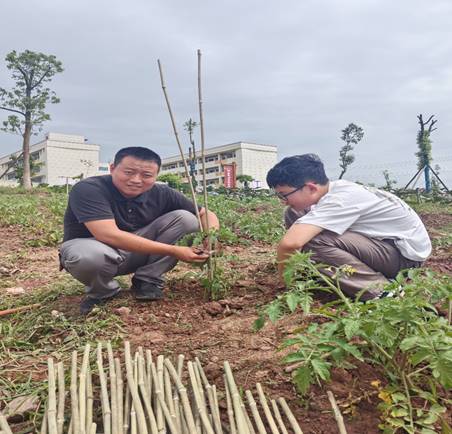 智能制造系教师养护蔬菜
