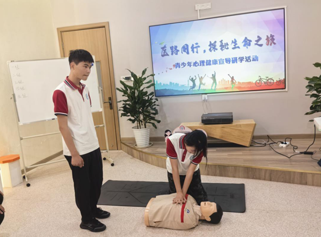 活动中,学生通过实地观摩、专题讲座学习、实践操作体验及情感交流互动,普遍反映获益匪浅。参与者不仅对生命科学和青春期健康建立了系统性认知,熟练掌握了心肺复苏等急救技能,更深刻体悟到珍爱生命、关怀他人的重要意义。此次活动创新实施"医生执教、医院为课"的教育模式,突破传统校园边界,将教学场景延伸至真实社会场域。学生通过直面临床实景,既系统建构健康知识体系,又在医患互动观察、医疗团队协作观摩中,逐步形成积极正向的心理认知。