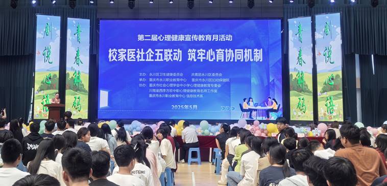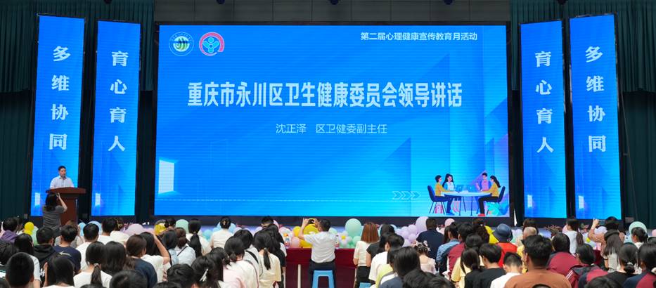 2025年5月29日,重庆市永川职教中心迎来了第二届心理健康教育宣传月活动。此次活动由区卫健委、区共青团委员会联合,永川职业教育中心主办,以 “校家医社企五联动,筑牢心育协同机制” 为主题,旨在全方位培育学生良好的心理素质。出席本次活动的单位有区卫健委、区关工委、团区委、区妇幼保健院和西南大学心理学部。学生家长、企业、社区代表,在校学生代表等共3000余人参加。