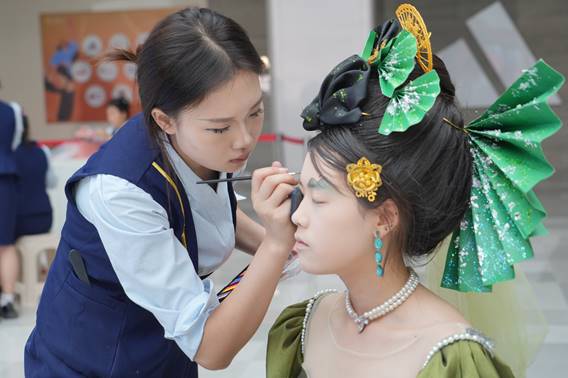 在赛事间隙,舞蹈表演惊艳登场。学生们身着华服,以灵动舞姿演绎《霓裳羽衣》的古典雅韵,用现代街舞诠释美妆时尚的活力跃动。肢体语言与美妆艺术完美碰撞,柔美的身段线条、绚丽的舞台妆容,将美的多元形态展现得淋漓尽致,为现场观众带来视听双重震撼。